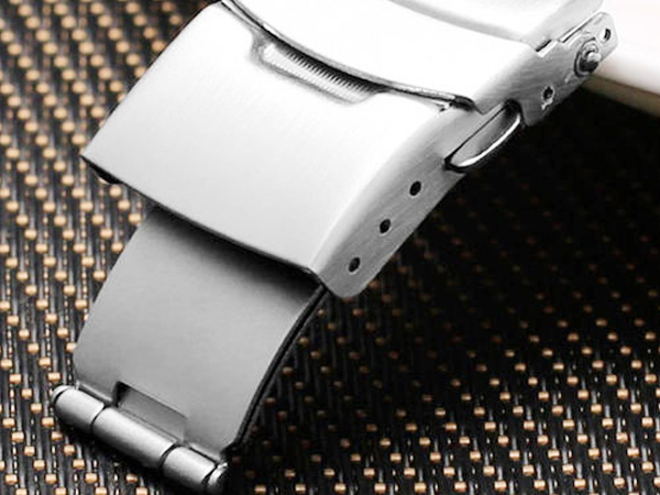 5、手表暗扣(hidden clasp)基本上都是不锈钢,一般用于钢带手表,折叠起来后与表带浑然一体,非常美观因此也很受人们欢迎。一般不可镭射LOGO(因为藏在表带下面,LOGO看不到),LOGO可以做在表带上面